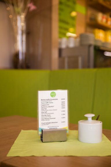 Genießen Sie gesunde Snacks und Mahlzeiten in unserem einladenden Bistro mit Aussenterasse